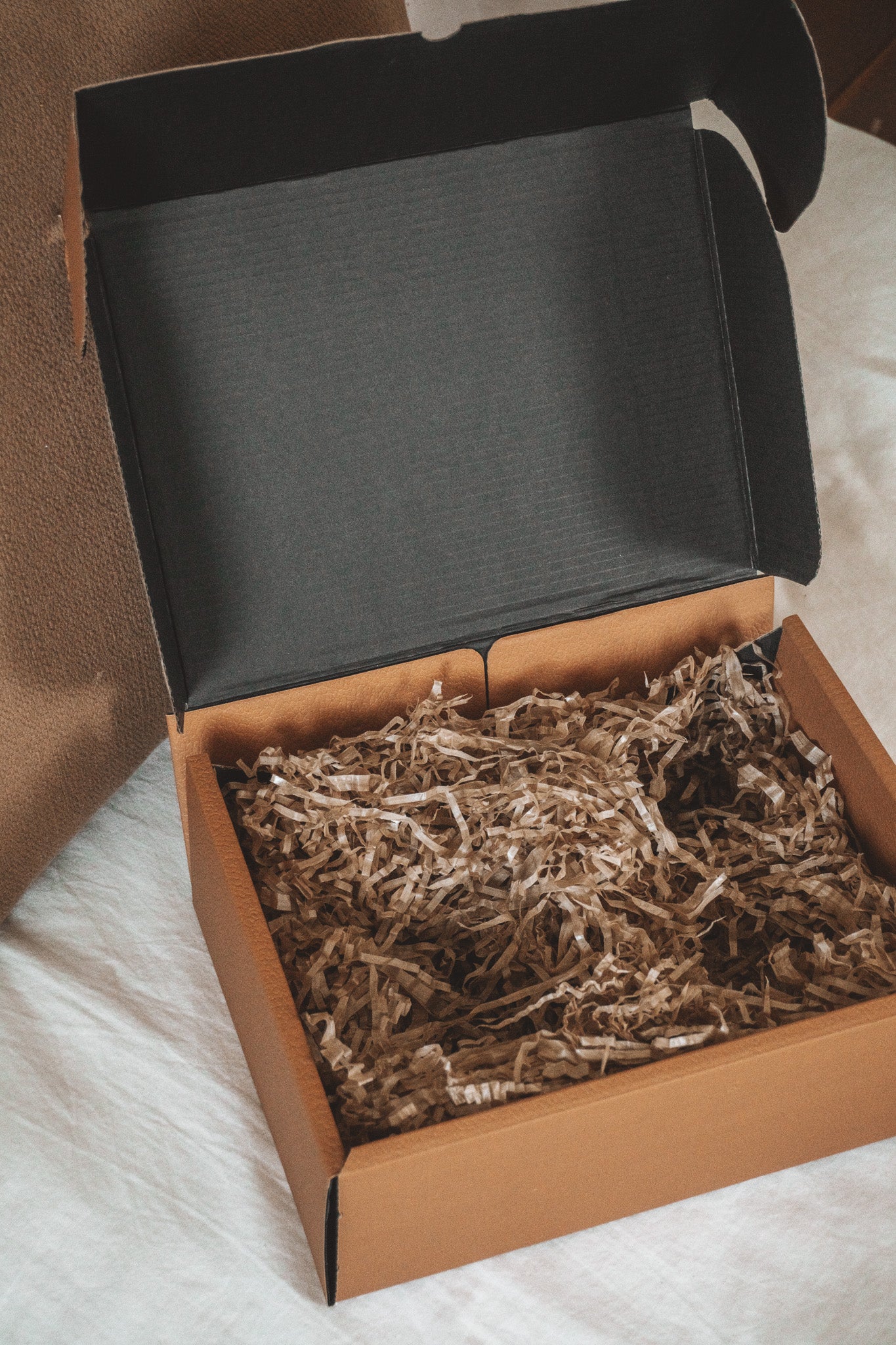 Candle gifting option includes a kraft box with a white label, a white tissue paper, kraft tag and jute bow