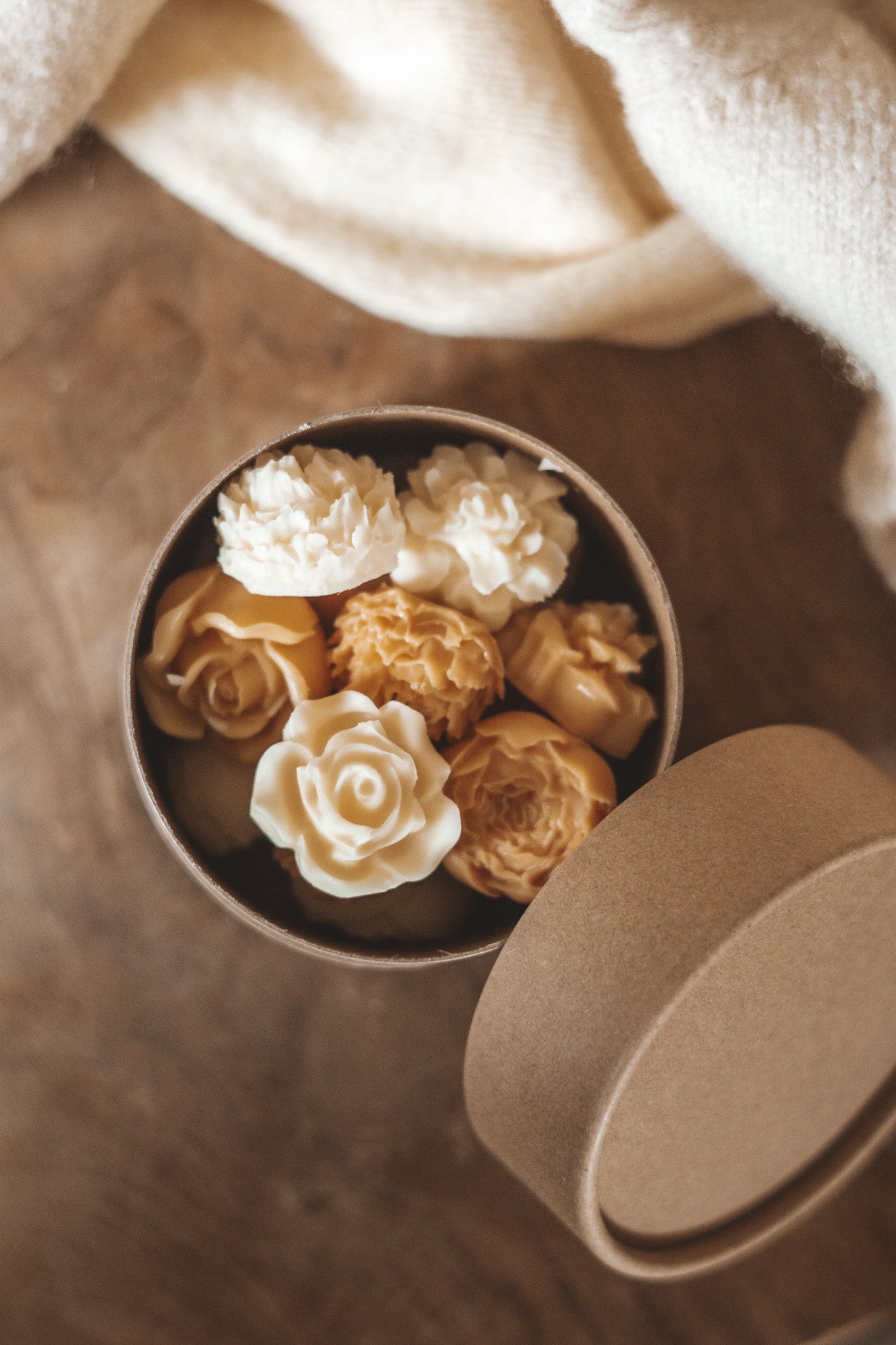 Floral Melt is a wax melt with delicate flowers in soft yellow tones. It fills your home with a luxurious honey floral scent, warm and elegant.