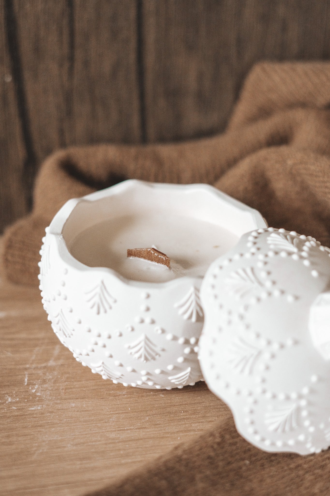 - Ingredientes: water and non-toxic ceramic, cera de soja, fragrâncias vegan