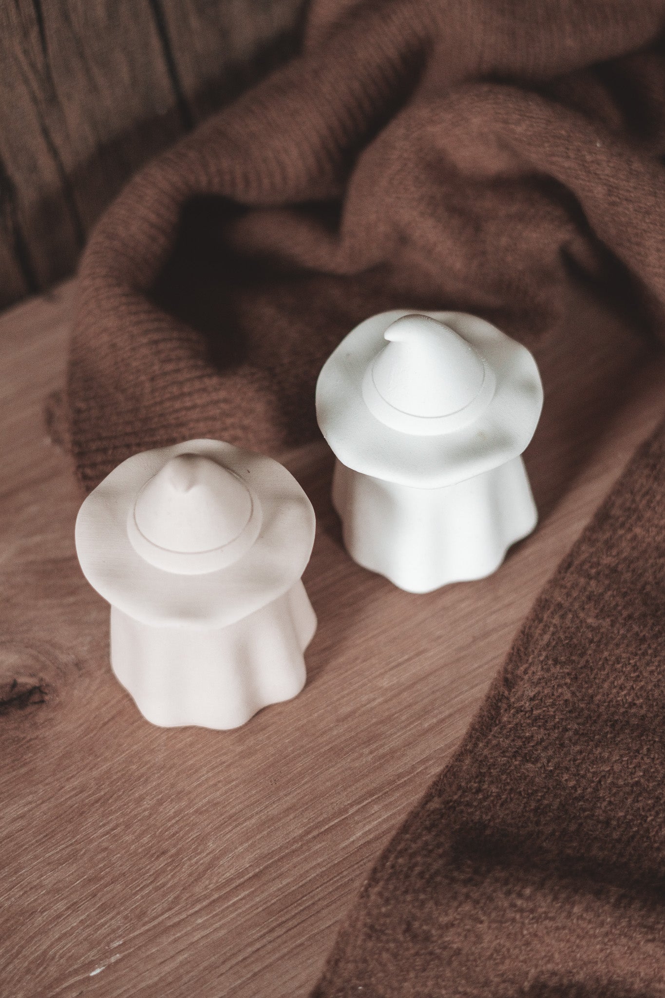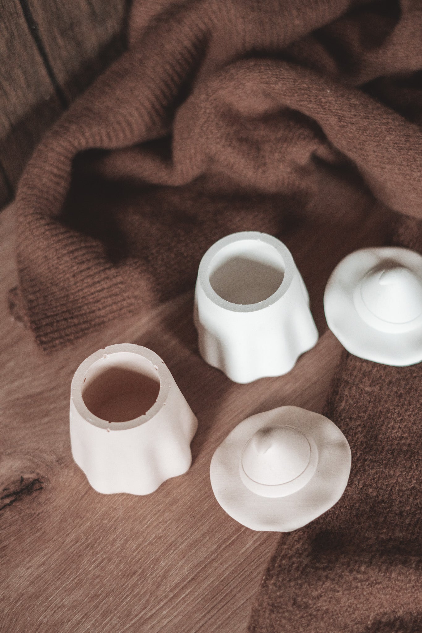 A opção de oferta das velas inclui uma caixa kraft com uma etiqueta branca, papel de seda branco, cartão karft e um lanço em fio de juta.