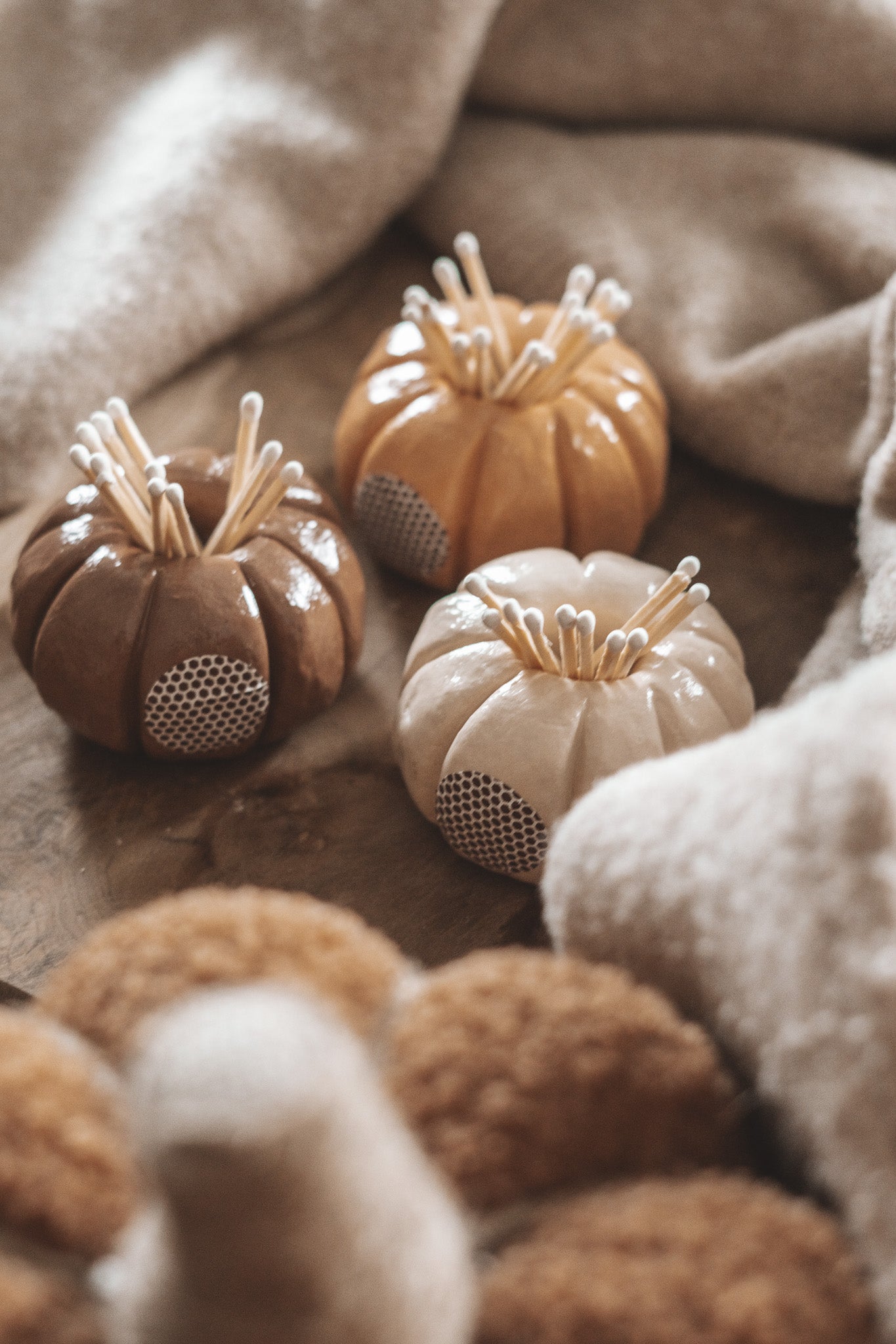 O Suporte de Fósforos Abóbora é uma pequena base em forma de abóbora, pensada para teres sempre os fósforos à mão nos teus momentos com velas.