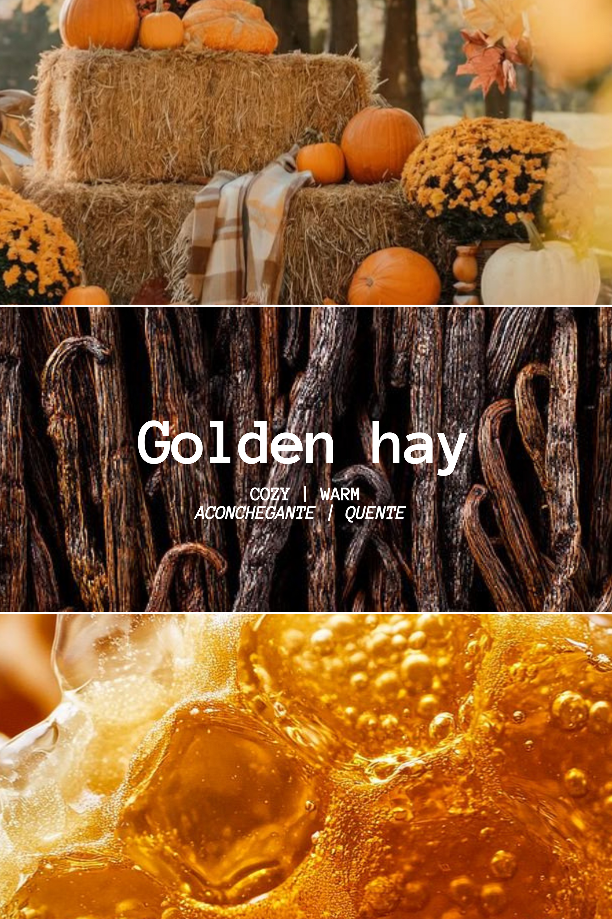 O Golden Hay é como passear por campos dourados ao pôr do sol. As notas doces de flores de mel encontram-se com flores suaves e especiarias quentes, repousando sobre uma base envolvente de baunilha, madeiras e almíscar. É reconfortante, luminoso e um pouco nostálgico—como engarrafar o brilho dos fins de tarde de outono.